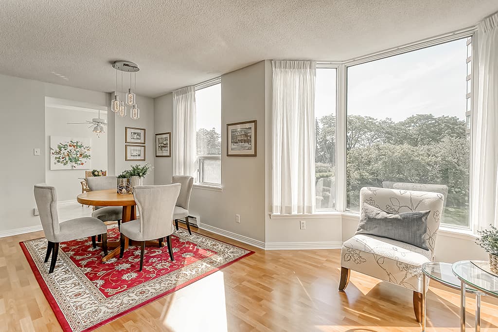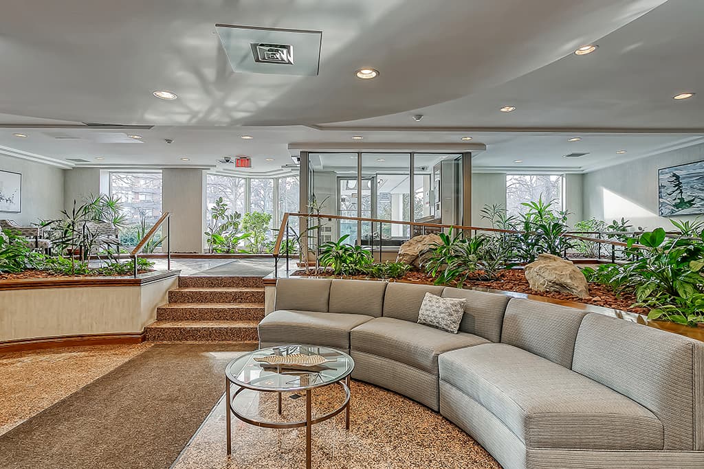 Stunning 2 bedroom, 2 full bathroom sought after corner unit located in the prestigiousArboretum in Glen Abbey. With approximately 1450 sq ft of living space, enjoy stunningprivate treeline views. Classic white kitchen opens to the breakfast area with floor to ceiling windows that provide spectacular views for your morning coffee & casual dining. The open concept floor plan provides generous sized living & dining with high quality laminate floors & a sliding glass door provides access to the balcony plus an Atrium sitting area. The spacious primary bedroom includes a walk-in closet & a spa like ensuite with soaker tub & separate shower. The 2nd bedroom offers a double closet & convenient access to the second updated full bathroom. Both bedrooms provide high quality laminate flooring. This unit also includes in-suite laundry, a NEWER heat pump, 2 underground parking spots & a storage locker. This is a beautifully maintained complex with lush grounds & extensive amenities including an indoor pool, hot tub, & sauna, party room, guest suites, gym, billiards room, library, hobby room, tennis courts, car wash, outdoor patio area with BBQs. Walking distance to the famous MonasteryBakery & area trails. Easy access to major highways, transit.